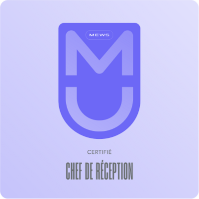 Cette certification Mews University atteste que l'utilisateur a suivi et terminé les 12 cours qui composent le parcours d'apprentissage Responsable de la réception et qu'il a obtenu au moins 80% de bonnes réponses aux 20 questions de l'examen. L'utilisateur possède de solides connaissances de base ainsi que les compétences et le savoir-faire nécessaires pour gérer efficacement les opérations du front office grâce à l'écosystème Mews. L'utilisateur reçoit le badge Responsable de la réception.